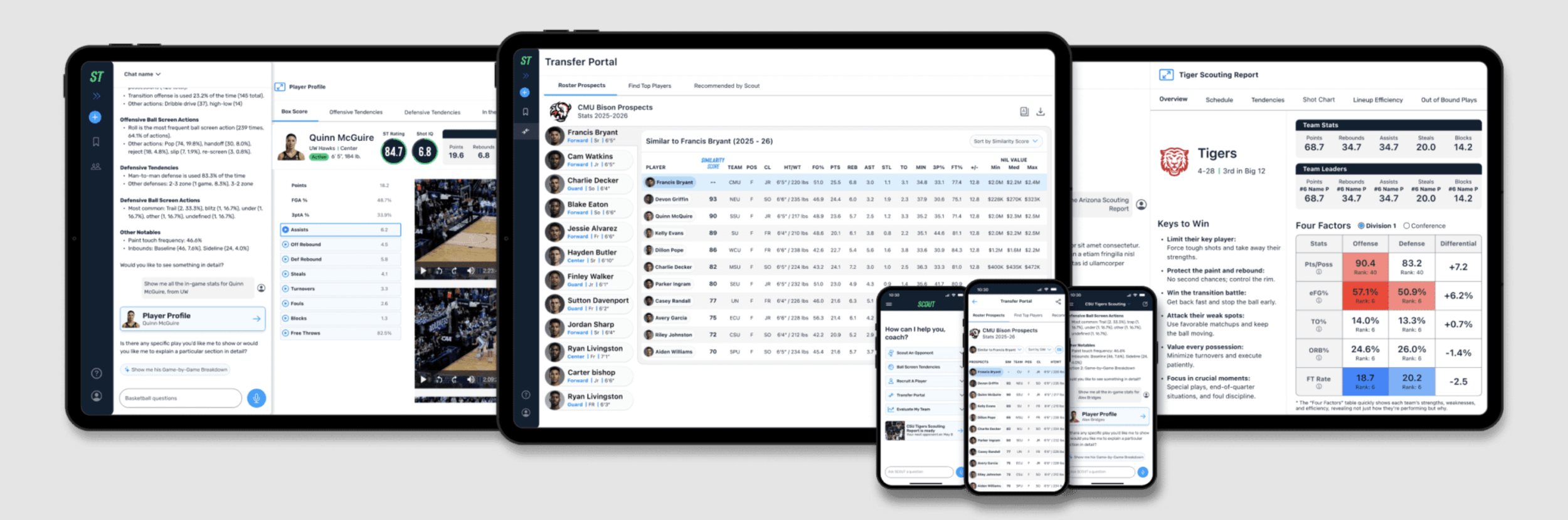 The announcement comes as the transfer portal reshapes 60 percent of Division I men’s rosters and 30% of women’s rosters annually, compressing what was once a complex recruiting process into a window measured in weeks. For a coaching staff relying on manual film review, fragmented stat databases, and anecdotal NIL market data, the portal has become as much a liability as an opportunity.